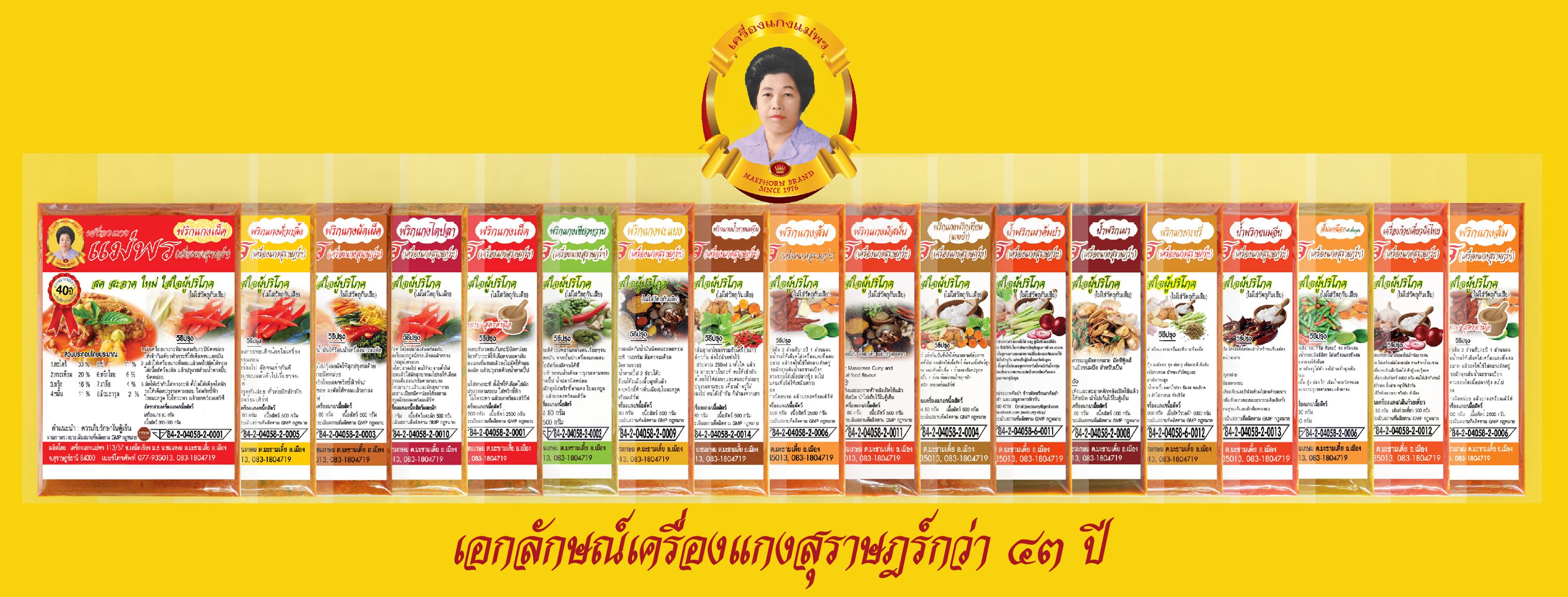 ปัจจุบัน ร้านมีเครื่องแกงปักษ์ใต้ให้เลือกมากมาย โดยแต่ละสูตรมีเอกลักษณ์เฉพาะ ไม่ใส่วัตถุกันเสีย ไม่ปนเปื้อน ไม่ก่อให้เกิดอันตรายต่อผู้บริโภค และยังถูกหลักอนามัยทุกขั้นตอน